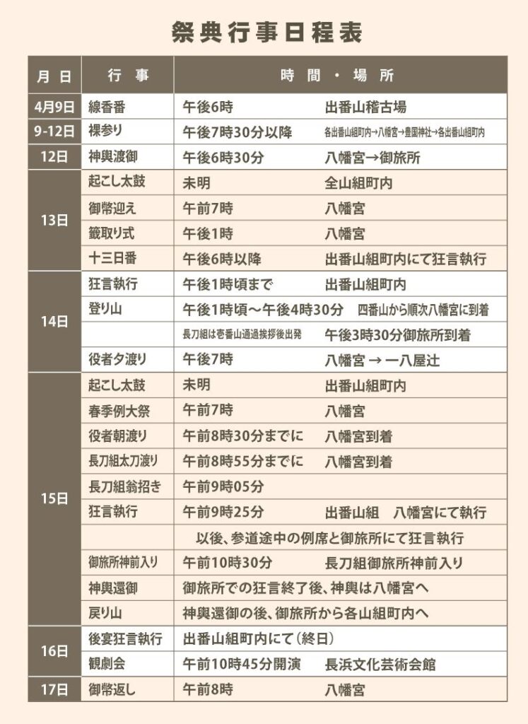 この『長浜曳山祭』の2025年の日程・開催時間、アクセス・駐車場、見どころについてまとめました。
