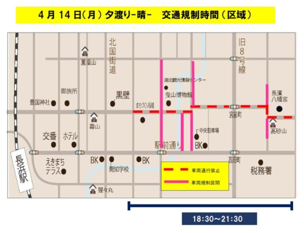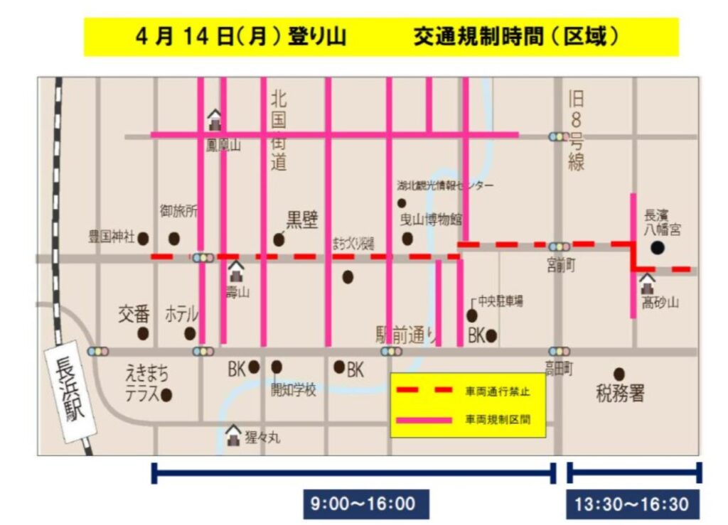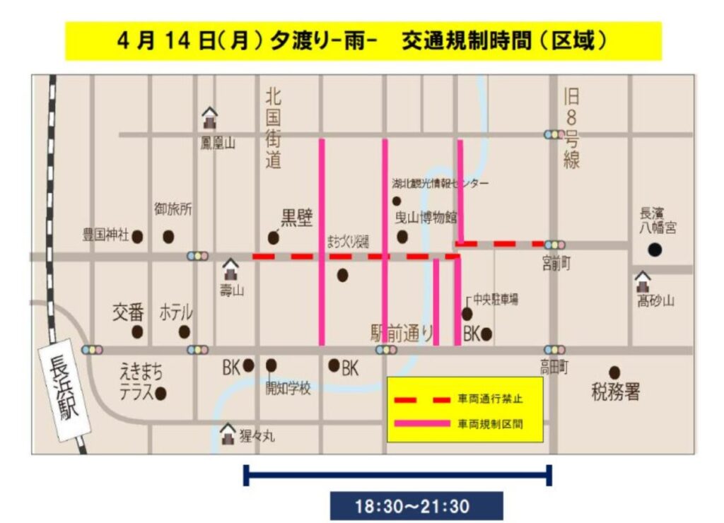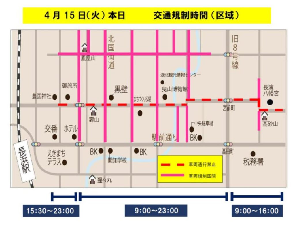 長浜曳山祭では交通規制が行われますので車で行かれる際は注意くださいね!