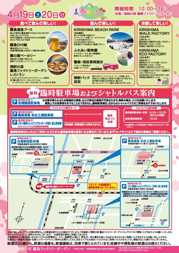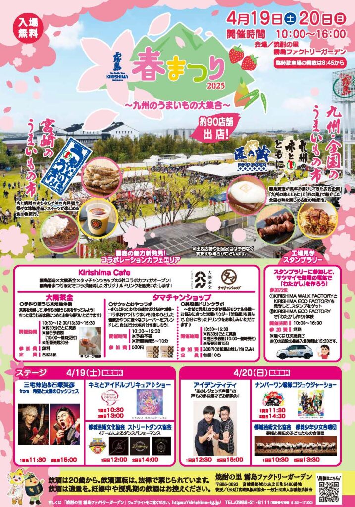 宮崎県都城市にある「焼酎の里 霧島ファクトリーガーデン」にて行われる『霧島春まつり』。「焼酎文化は食文化の基にありき」という霧島酒造の基本姿勢のもと、沢山の人に食と焼酎を楽しんでもらうといったイベントになります。