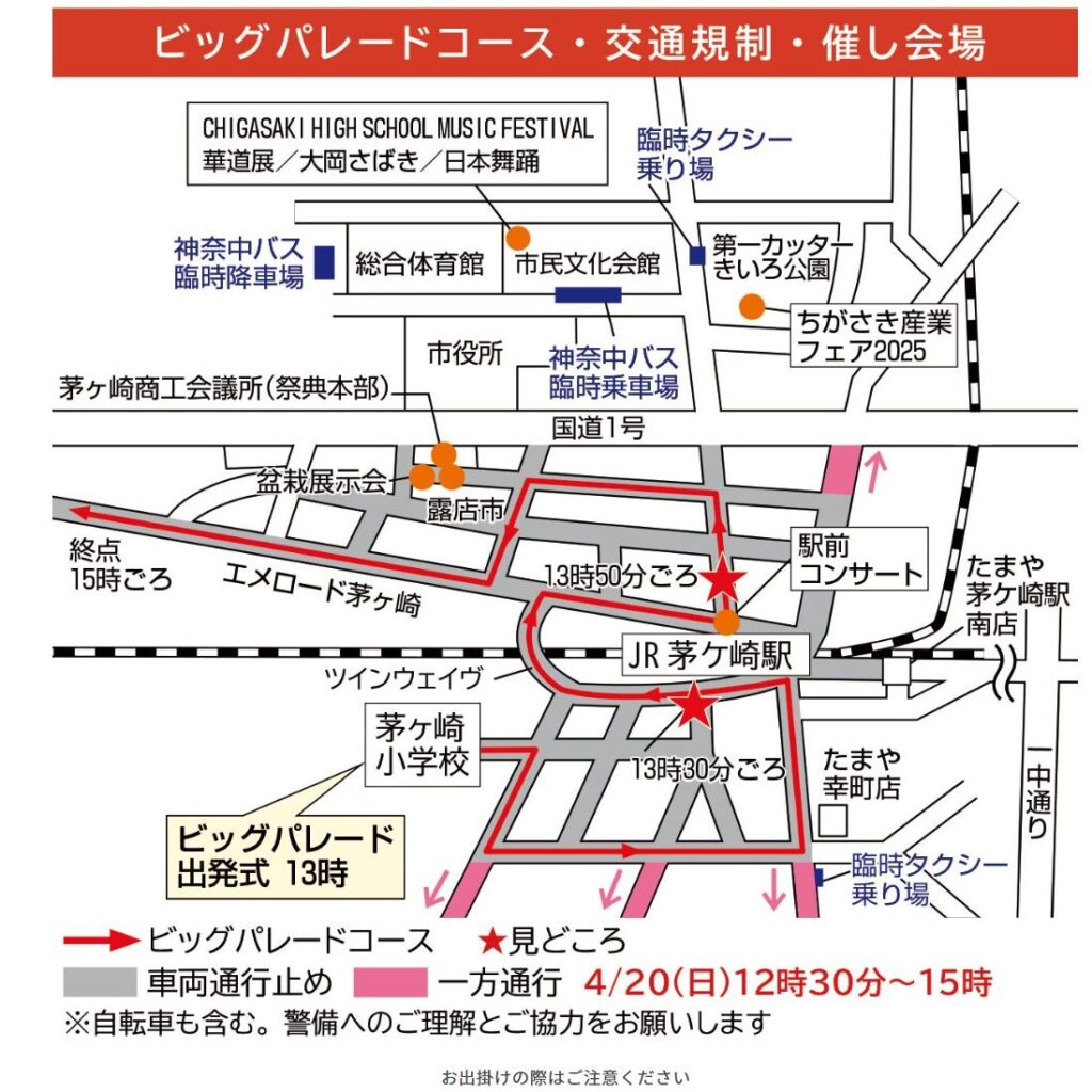 ※12時半~15時、茅ケ崎駅周辺道路で交通規制が行われます