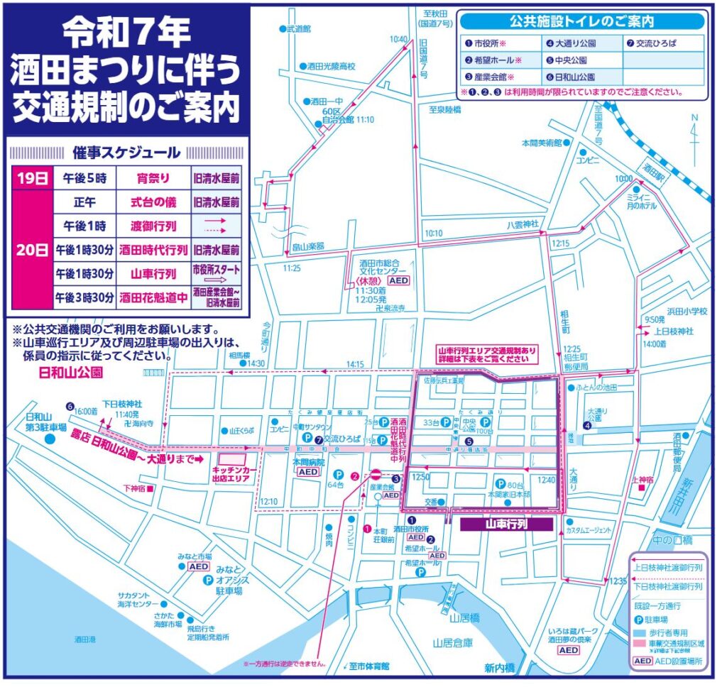 酒田まつりでは当日交通規制が行われますので車で行かれる際は注意していくように!