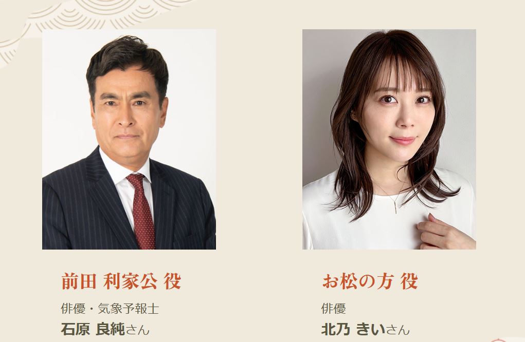 前田利家公役に 『石原良純』さん、前田利家公の正室、お松の方役に『北野きい』さんが参加されるそうです!