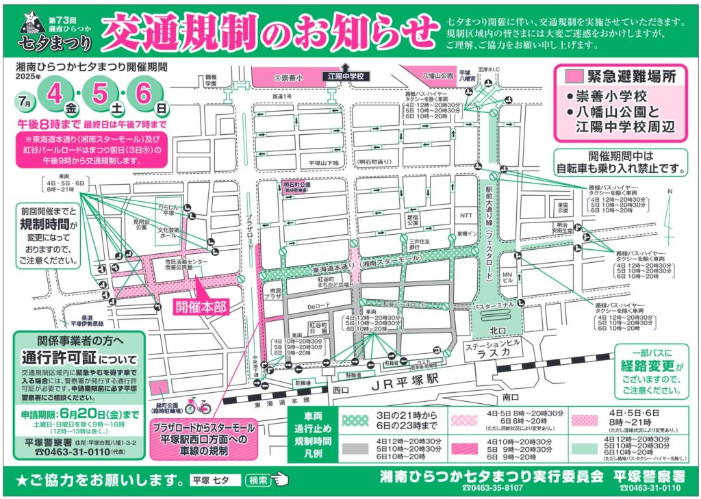 | 問い合わせ | 湘南ひらつか七夕まつり実行委員会 (事務局:平塚市役所商業観光課) 電話:0463-35-8107 FAX:0463-35-8125 |