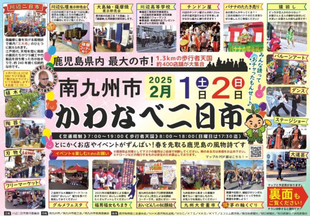 『川辺二日市(かわなべふつかいち)』は、鹿児島県南九州市川辺町で毎年2月上旬に開催される伝統的な市(いち)で、230年以上の歴史を誇ります。春の訪れを告げるこのイベントは、地元の人々にとって欠かせない行事として親しまれています。