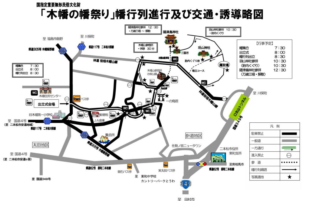 その後、「権立」と「幡行列」が合流し、隠津島神社へ参拝して祭りは締めくくられます。「木幡の幡祭り」は青森県の「神賑祭」や長野県の「岳の幟」とともに、日本三大旗祭りの一つに数えられ、伝統と勇壮さを今に伝える日本を代表する祭
